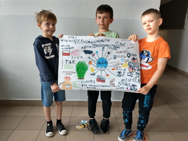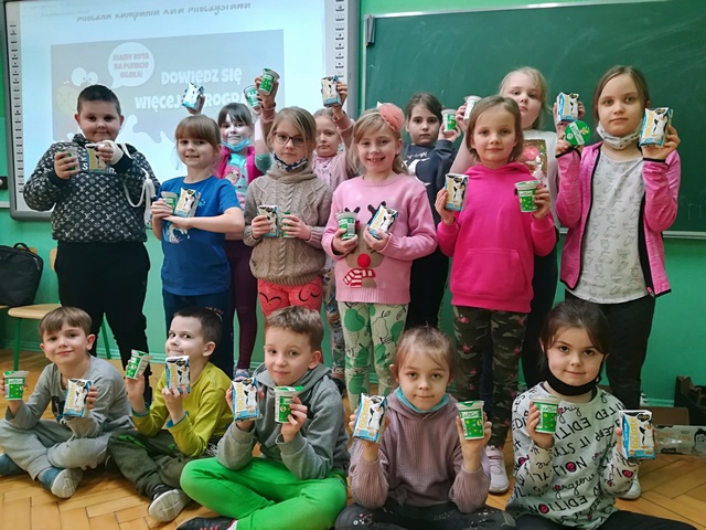 Uczniowie klas pierwszych uczestniczyli w II semestrze roku szkolnego 2021/2022 w zajęciach z projektu „Mamy kota na punkcie mleka” finansowanego z Funduszu Promocji Mleka i realizowanego przez Polską Izbę Mleka we współpracy z Polską Federacją Hodowców Bydła i Producentów Mleka. Głównym celem projektu było wzmocnienie pozytywnego wizerunku mleka i produktów mlecznych pochodzących z Polski oraz kształtowanie zdrowych nawyków żywieniowych u dzieci już od najmłodszych lat. Uczniowie przekonali się, dlaczego warto pić mleko i jeść przetwory mleczne, zdobyli wiedzę na temat unikalnej wartości odżywczej mleka oraz roli jaką odgrywa w zachowaniu zdrowia. Przy okazji była to świetna promocja zdrowego stylu życia.