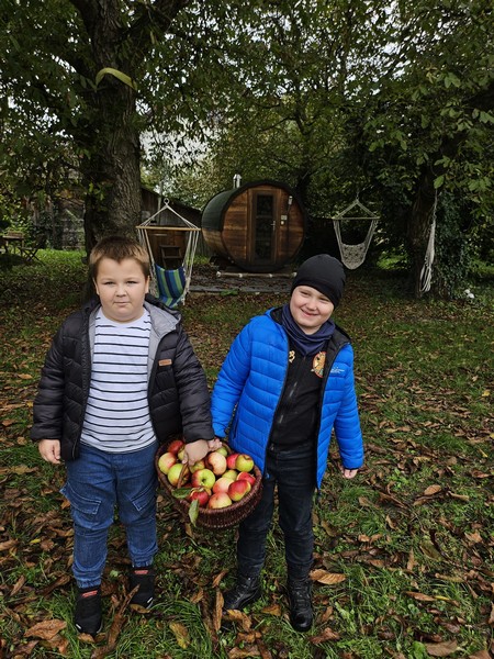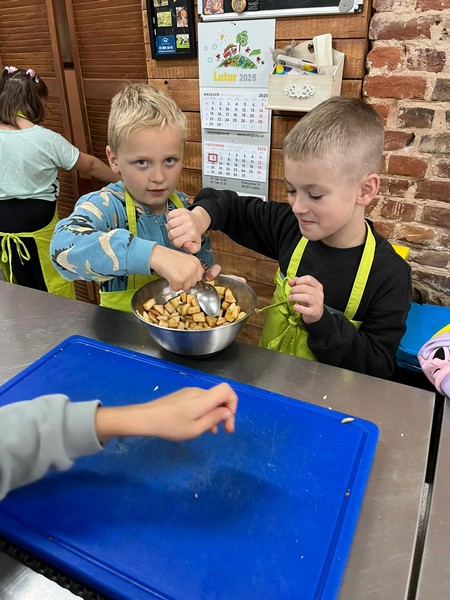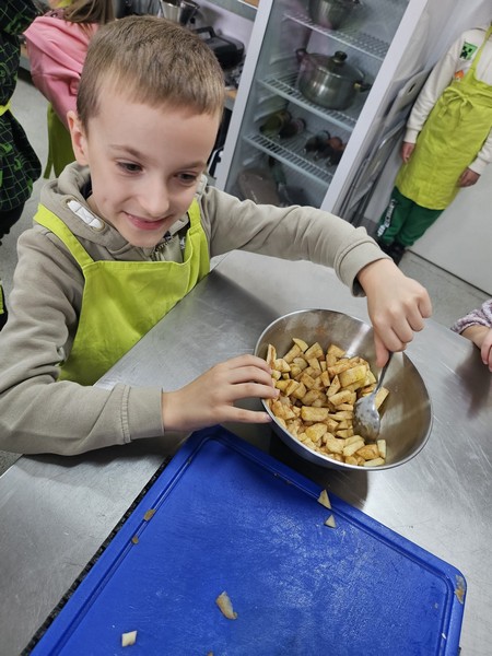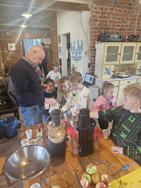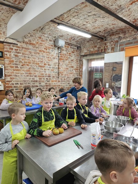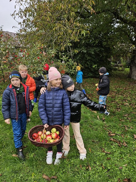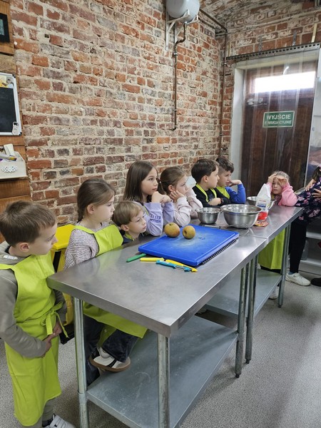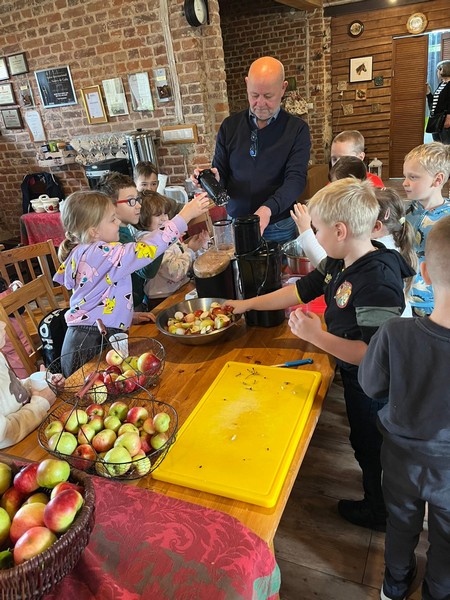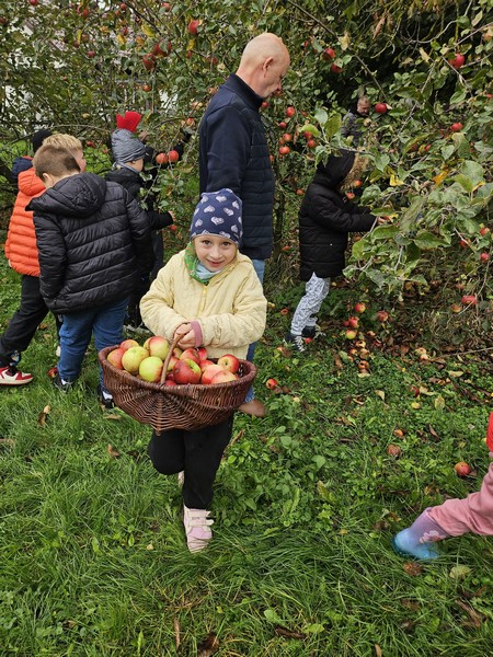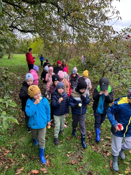 7 października 2025 r. uczniowie klas pierwszych uczestniczyli w warsztatach „Entliczek pentliczek – wszystko o jabłuszkach” w Solisowym Siole. Poznali różne gatunki jabłoni, nauczyli się rozpoznawać je po smaku i wyglądzie oraz dowiedzieli się, jak prawidłowo zrywać owoce. Uczniowie samodzielnie wyciskali świeży sok z jabłek i piekli babeczki jabłkowe. Wycieczka była doskonałą okazją do nauki i integracji klasy w przyjemnej, jesiennej atmosferze.