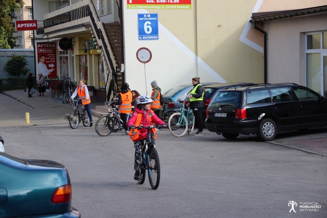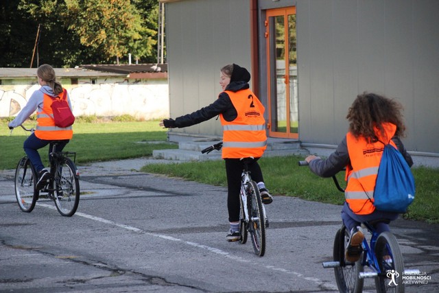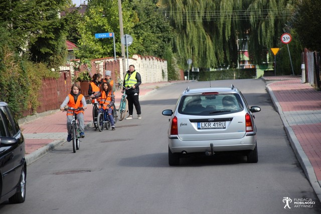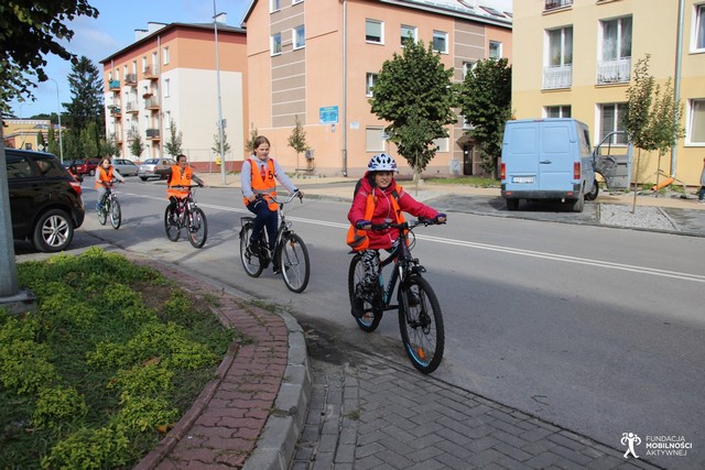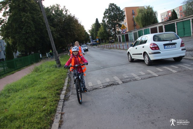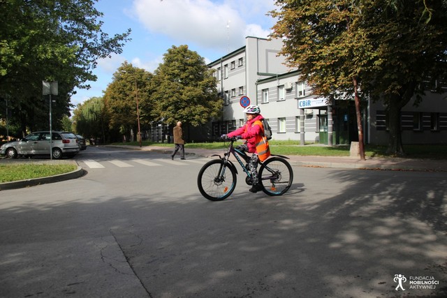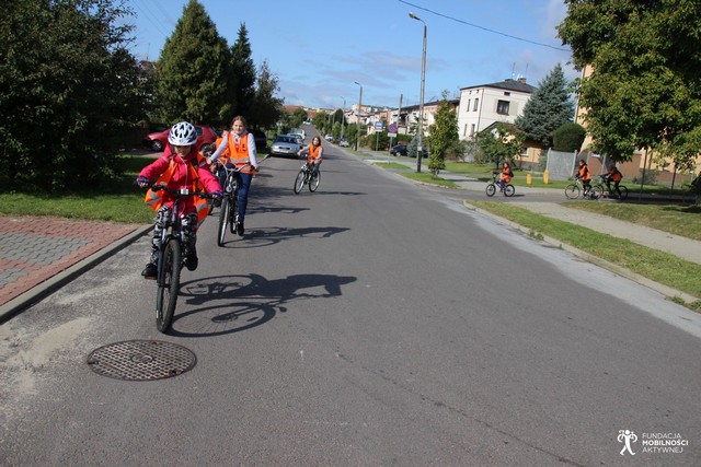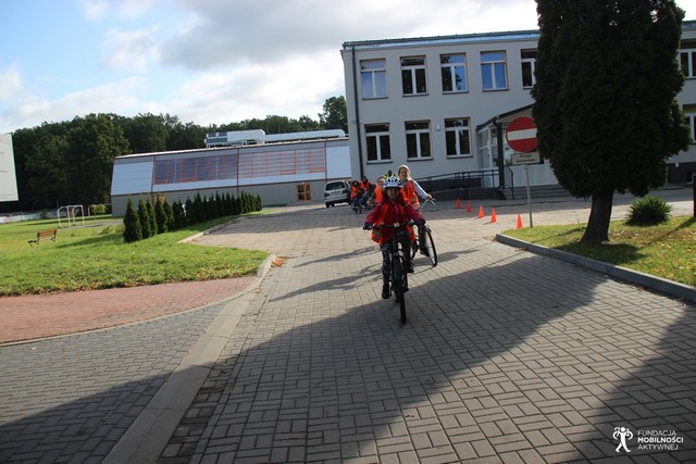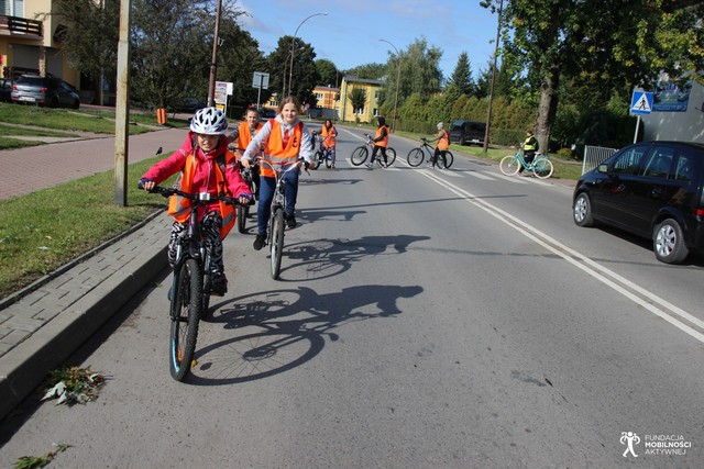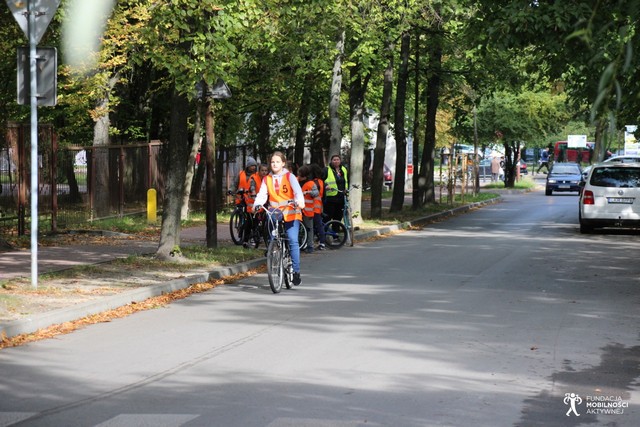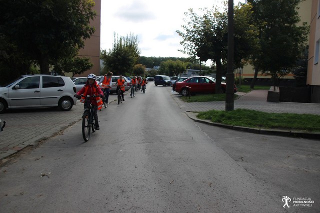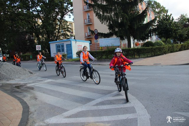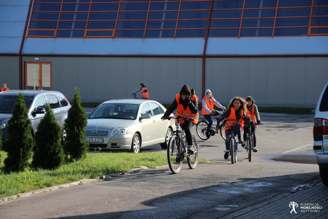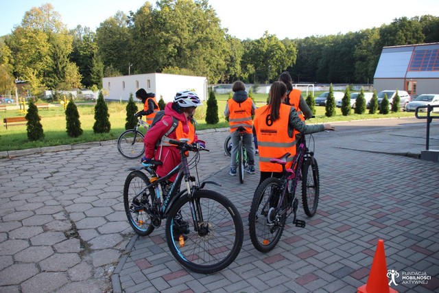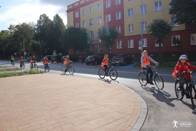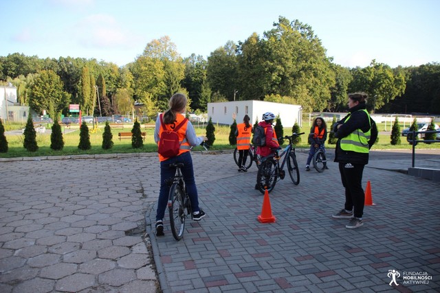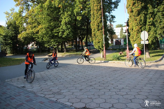 Dnia 19 września uczniowie naszej szkoły wzięli udział w zajęciach praktycznych w ramach projektu „Edukacja rowerowa 2.0” zorganizowanych przez Fundację Mobilności Aktywnej. Zajęcia rozpoczęły się od omówienia zasad BRD na drodze, sprawdzenia stanu technicznego rowerów i ćwiczeń koordynacyjnych na placu przy szkole. Następnie grupa uczniów pod opieką pani Iwony Kułagi oraz trenera pana Aleksandra Wiącka wyruszyła na przejazd ulicami miasta, a później uczestniczyła w ćwiczeniach indywidualnych na skrzyżowaniach. Uczniowie szkolili się w skręcaniu w lewo, wyjeżdżaniu z drogi podporządkowanej i w prawidłowym zachowaniu się na przejeździe dla rowerzystów.